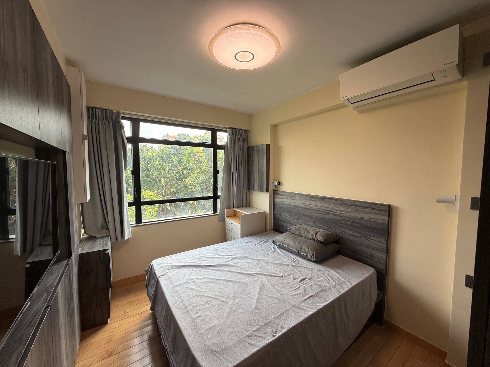 good condition 3 bedrooms, 2 bathrooms, balcony, close to MTR bus routes.